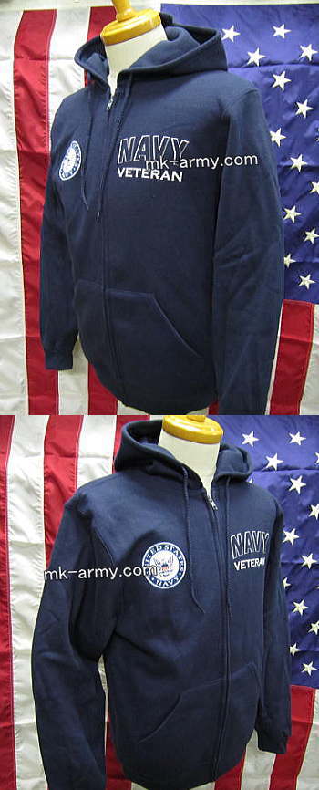 Soffe社の倉庫よりデット品が出て来ました。デザインはアメリカ海軍の退役軍人。右胸にU.S.NAVYのエンブレム。右胸にはNAVYとVETERANのロゴプリント。フロントジッパーなので脱着が超〜便利、またポケットが有るのでスマホが入ります。