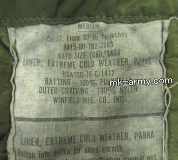 米軍放出品・M65フィッシュテールパーカー用ライナー(MEDIUM)