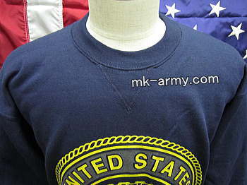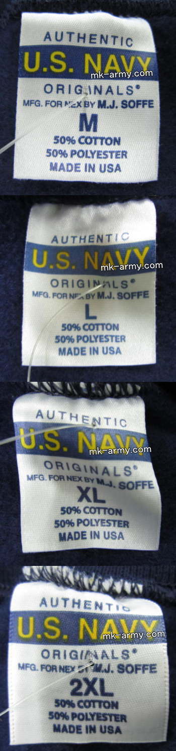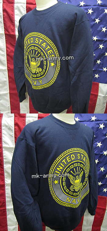 Soffe社の倉庫よりデット品のアメリカ海軍オフィシャル品!デザインはU.S.NAVYのエンブレムでリフレクタープリント、着丈側はNAVYのリフレクタープリント。これのパーカーはヨク見かけますがスエット(素材:綿&ポリの混紡)は余り見かけないと思います。米国製