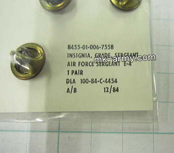 米軍放出品・アメリカ空軍の階級章ピンバッチ(伍長E-4)1ペア(デット品)