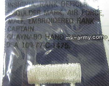 U.S.AIR FORCEのソフト肩章(デット品)、お持ちのシャツに肩章(エポエット)が有れば、それに通して使います。階級は士官の大尉(キャプテン)、中隊長クラスです。撮影の為に開封しましたがお送りするのは未開封です。放出品なのでUsed扱いです、ご理解願える方にNoリターン&Noクレームでお願い致します。