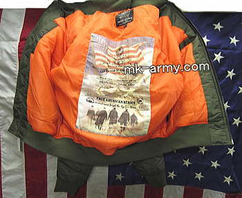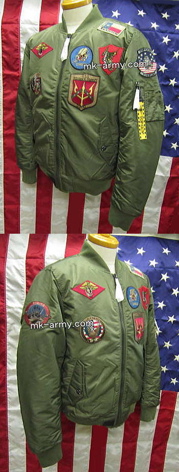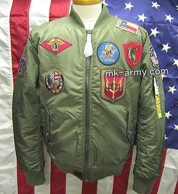 TOPGUNと言う米国の会社が企画して作ったMA-1です、映画トップガンと直接関係ありませんが映画を意識して作った感じです。パッチはサブデュート仕上げで、これでもかって位に付いてます。ナイロン生地は少し固め。日本だと此処まで出来ないかも?やっぱフライト系はUSAに限る?