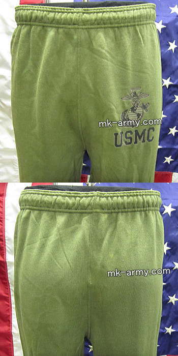 USMCのスウェットパンツ(綿&ポリエステル)です、軍の規律を乱すので脇にはポケット無し。イレギュラー品(通称:B品)なので多少のキズやプリントのズレが有ります。後ろ側に一部色抜けが有り、裾のゴムは伸びてます。その旨をご理解願える方にNoリターン&Noクレームでお願いします。程度が良いのを希望とか傷が無いのを送れなどのご要望にお応え出来兼ねます。