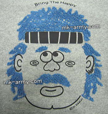 生地の厚さが10.3ozで裏地はパイル地のスエットです。柄のおじさんを見てると、世間の忙しさは関係なくノンビリと我が道を歩むって感じです。髪の毛、眉毛、髭の部分は特殊な縫製で見ていると思わず触りたく成ります。スウエットの素材は綿100%(裏パイル仕様)なので洗い込むと綿特有のゴツゴツ感が出て来ます。