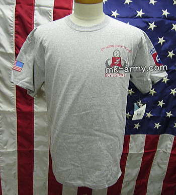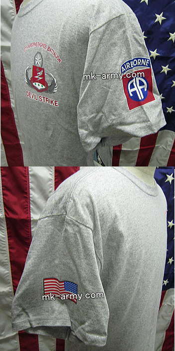 Soffe社がアメリカ陸軍よりライセンス許諾で作った第127空挺工兵大隊 第1旅団の半袖Teeシャツです。両面プリントで背中はマスター空挺章に第127空挺工兵大隊のマスコット、前側の左胸にはDEVIL STRIKE、左袖は第82空挺師団、右袖はU.S.国旗のプリント。