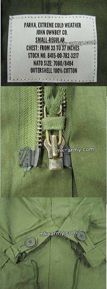 M65フィッシュテールパーカーの復刻品ですが、米軍へ納品した実績が有るJohn Owabeyジョン・オウンビー商品です。日本製の復刻版も数を多く出てますがますが、やっぱ元祖JOHN OWABEY社に限ります。デット品の生地(オリジナルと若干異なります、綿100%)にブラスジッパーを使用、1980年代当時の作りを忠実に再現しました。