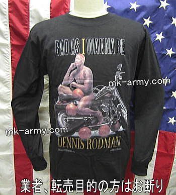 デニス・ロッドマン90sLONG-TEE(バイク乗り・ブラック)