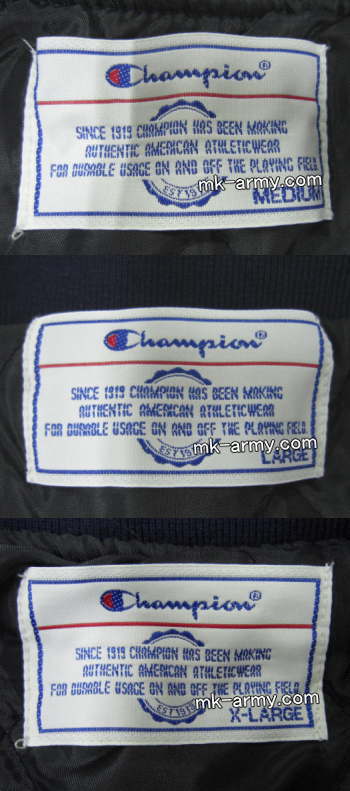 生地はストレッチするヴェルベットでキルト中綿(60g)入りです。右胸にはアメリカの国鳥「白頭鷲(イーグル)」と星条旗の刺繍、左胸には「CHAMPION NEW YORK」の刺繍です。背中はチャンピオン社が1919年にニューヨークで創立した5行政区の地図を高密度な刺繍で表現してます。スーベニアジャケットらしいデザインを演出。