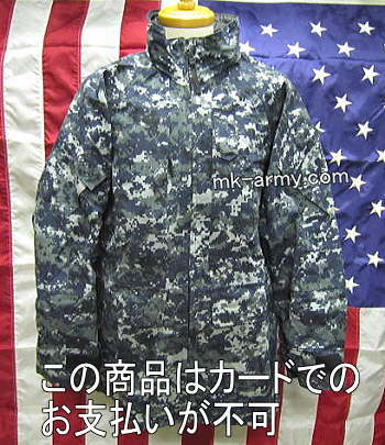 アメリカ海軍のNWUブルーデジタルGOR-TEXパーカー(AOR2)。サイズはMEDIUM/LONG、YKKの止水ジッパーは問題無く稼働します、破けなどは有りません。複数有りますが程度は同等、程度は良いのを送れなど個々の要望にはお応え出来兼ねます。